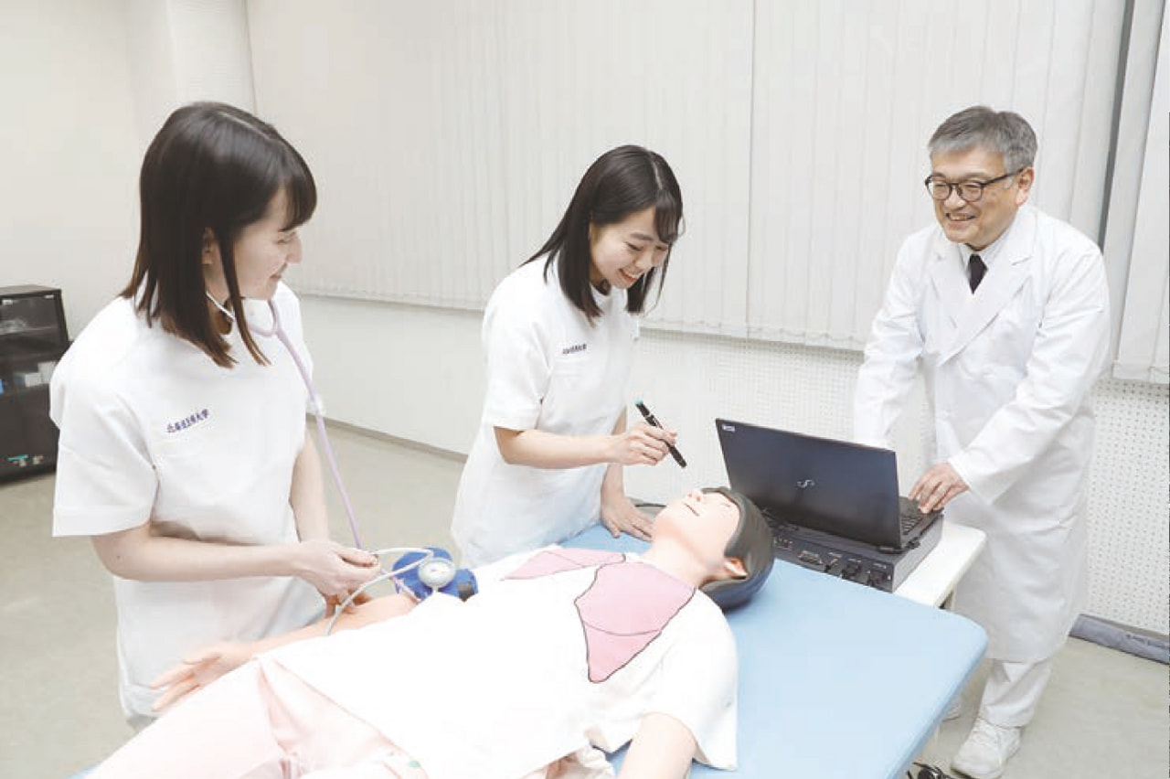 また、5年次の実務実習の経験を活かし、より実践的なフィジカルアセスメントの演習や看護福祉学部の教員による看護実践学などを選択して学ぶことができます。