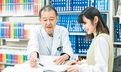 国家試験を見据え、1年次から高校の「化学」「生物」「物理」を基礎から学び直せる授業や苦手科目克服のための科目を設置。自習時には先輩学生によるサポートもあり、専任教員から個別指導を受けられる薬学教育支援室も整備しています。充実した体制で学修を手厚く支援します。