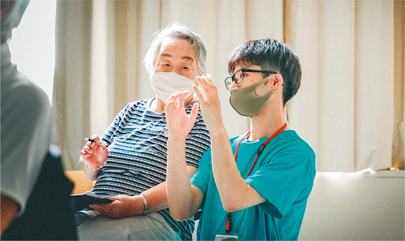 総合病院で理学療法士の一連の業務を体験。また、高齢者施設など医療機関以外での役割も学びます。