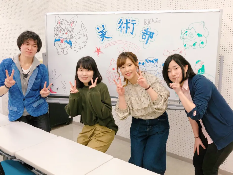 私たち美術部は、それぞれの好きなアニメやゲームなど趣味を語らいながら、楽しく作品創作に取り組んでいます。