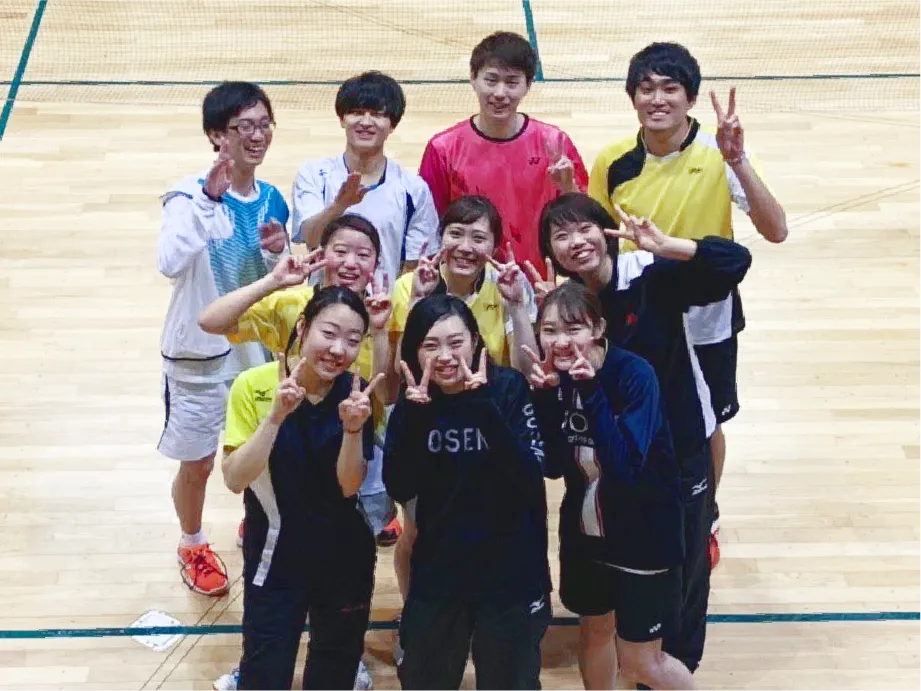 部なのでサークルよりもガチっぽいと思う方もいるかと思いますが、全くそんなことはありません。もちろんガチでやりたい方の相手をできる強い部員もいますが、ほとんどの部員はバドミントンを楽しむことに重点を置いています。1年生から6年生まで本当に仲が良く、誰もが居心地が良いと感じられるサードプレイスとなっておりますので、まずは見学・体験からでもお待ちしております! 大会に出たいなと思っているガチ勢のあなたも我が部の強者たちがお待ちしております!