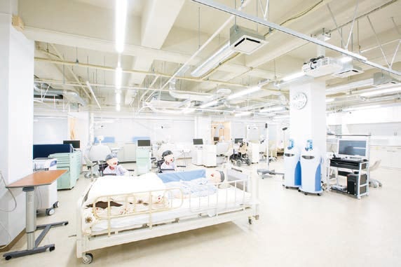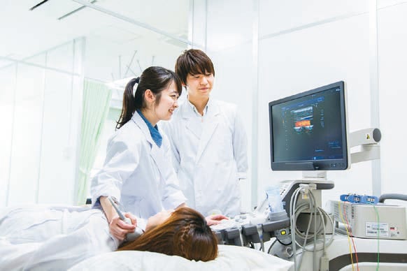 学内の実習室は、医療機関や福祉施設のリアルな環境を再現。実際の現場でも使用されている最先端で高度な機器やシステムを導入し、実践的なトレーニングを積むことができます。