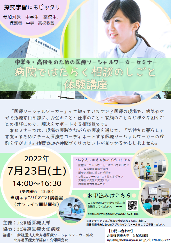 【7月23日(土)開催!】病院ではたらく相談のしごと体験講座