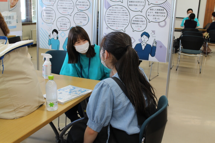 北海道医療大学オープンキャンパスは、受付での検温・手指消毒やマスクの着用、午前・午後で学科を分けるなど、新型コロナウイルス感染拡大防止のための配慮を行ったうえで実施しています。