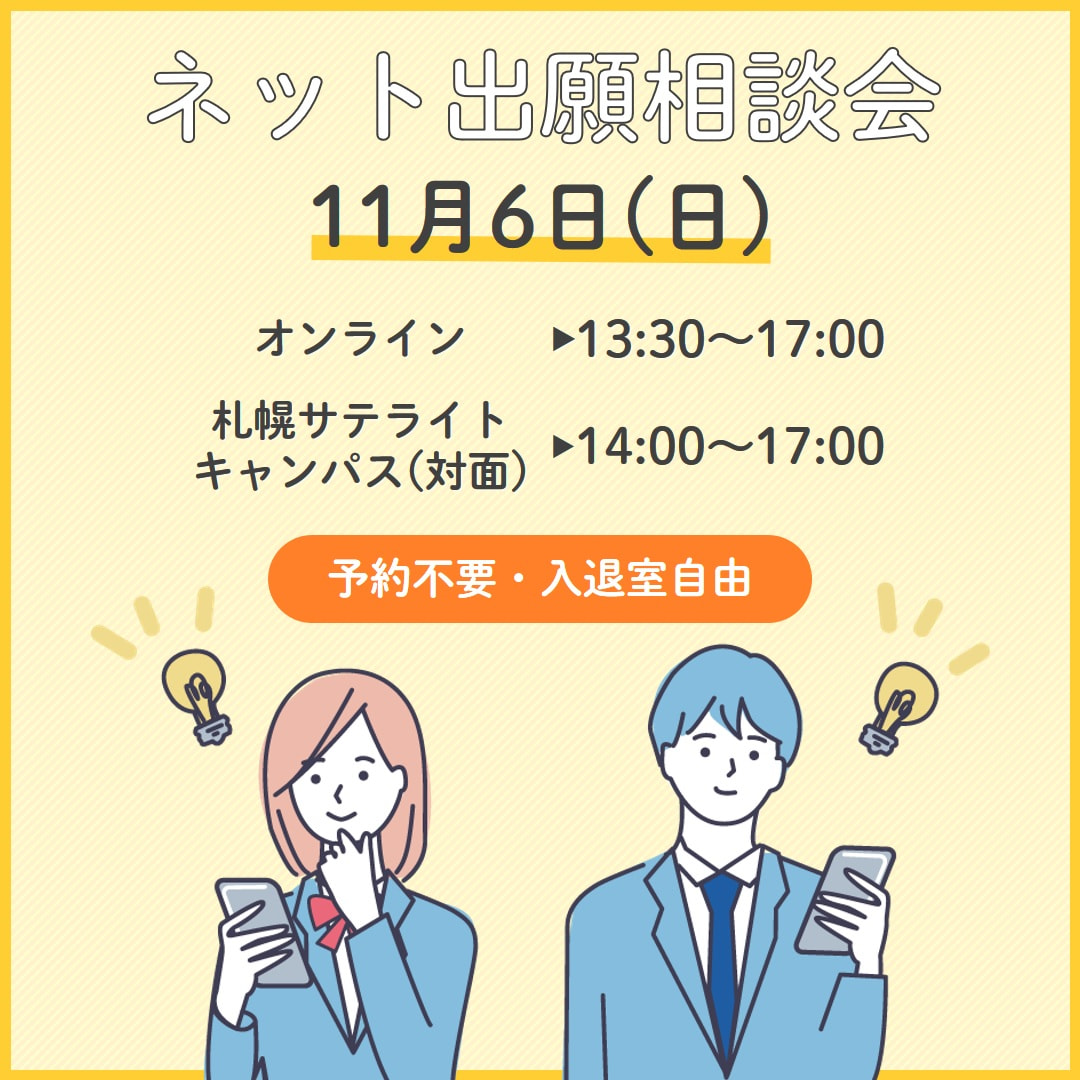 11月6日(日)に、ご予約不要のネット出願・進学相談会を開催します。