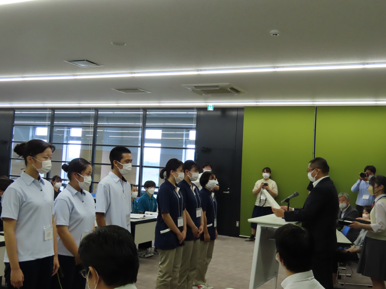 今回審査員を務めた、本学福祉マネジメント学科の池森康裕講師は「事例課題の限られた情報の中から、利用者の自立支援や安全・安楽、尊厳の保持をこころがけた配慮と工夫に感心した。利用者の想いを叶えるために、各競技者のケアに対するこだわりがケアの質を一層高めていた。」と話しており、未来の介護を担う生徒さんたちの技術や態度のみならず、事前の準備や対象者への配慮など様々な点が素晴らしいと評価されていました。