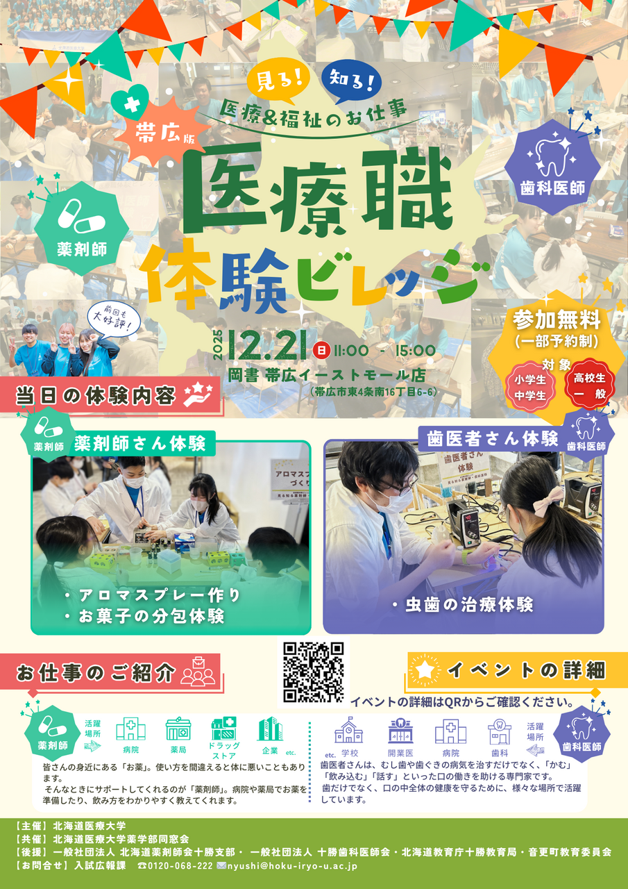 12/21(日)薬学部・歯学部特別イベント 医療職体験ビレッジ「帯広版 見る知る薬剤師・歯科医師」を開催します