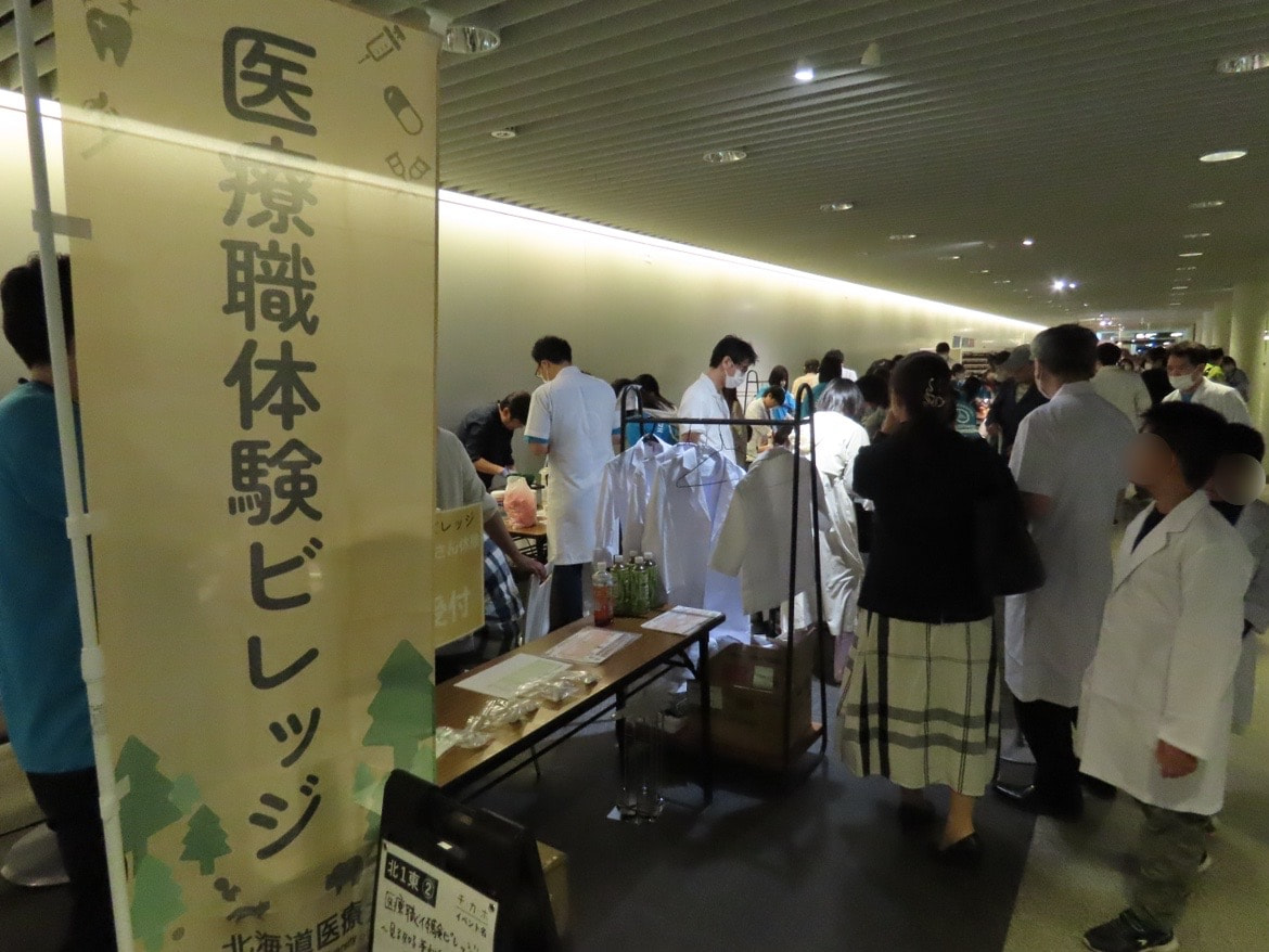 2024年5月12日(日)に札幌駅前通地下歩行空間(チ・カ・ホ)にて職業体験イベント「医療職体験ビレッジ~見る知る薬剤師・歯科医師・歯科衛生士~」を開催しました。