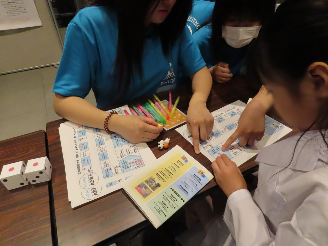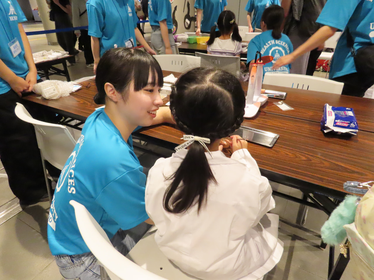 本学の教職員・在学生に加え、連携協定校である北海高等学校や札幌光星高等学校の生徒さんをはじめ、札幌市内・札幌市外の高校生がボランティアスタッフとして参加してくださり、各ブースのアシスタントとして活躍してくれました。会場内のブースでは、本学でめざすことのできる職業(薬剤師・歯科医師・看護師・福祉職・公認心理師・理学療法士・作業療法士・言語聴覚士・臨床検査技師・歯科衛生士・データサイエンティスト)について、実際の業務を体験できるプログラムを提供しました。